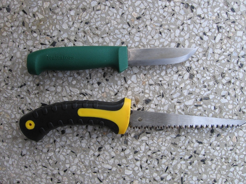 И трите ножа са тяхна изработка като двата са тествани вече  ;D ,а ножа за дране ще почака малко . Двете остриета са много добри като материал и изработка ,пробвано два дена в кухнята от друга наша съфорумка  ;D . За ножа за дране още не съм имал възможност да го пробвам в работа ,но днеска следобяд си му направих някой тестове и мога да кажа че и той ще върши работа .