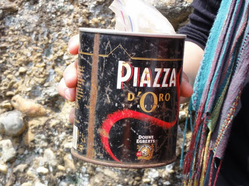 Добре, ама нямаше никакво изкарване. /вероятно като е слаган кеша цепката е била по-широка, а после е срастнала/. Тъй че вадихме предметите един по един отвътре. Взехиме си нещо, оставихме друго, регнахме се и доволни заприпкахме обратно към колата.
